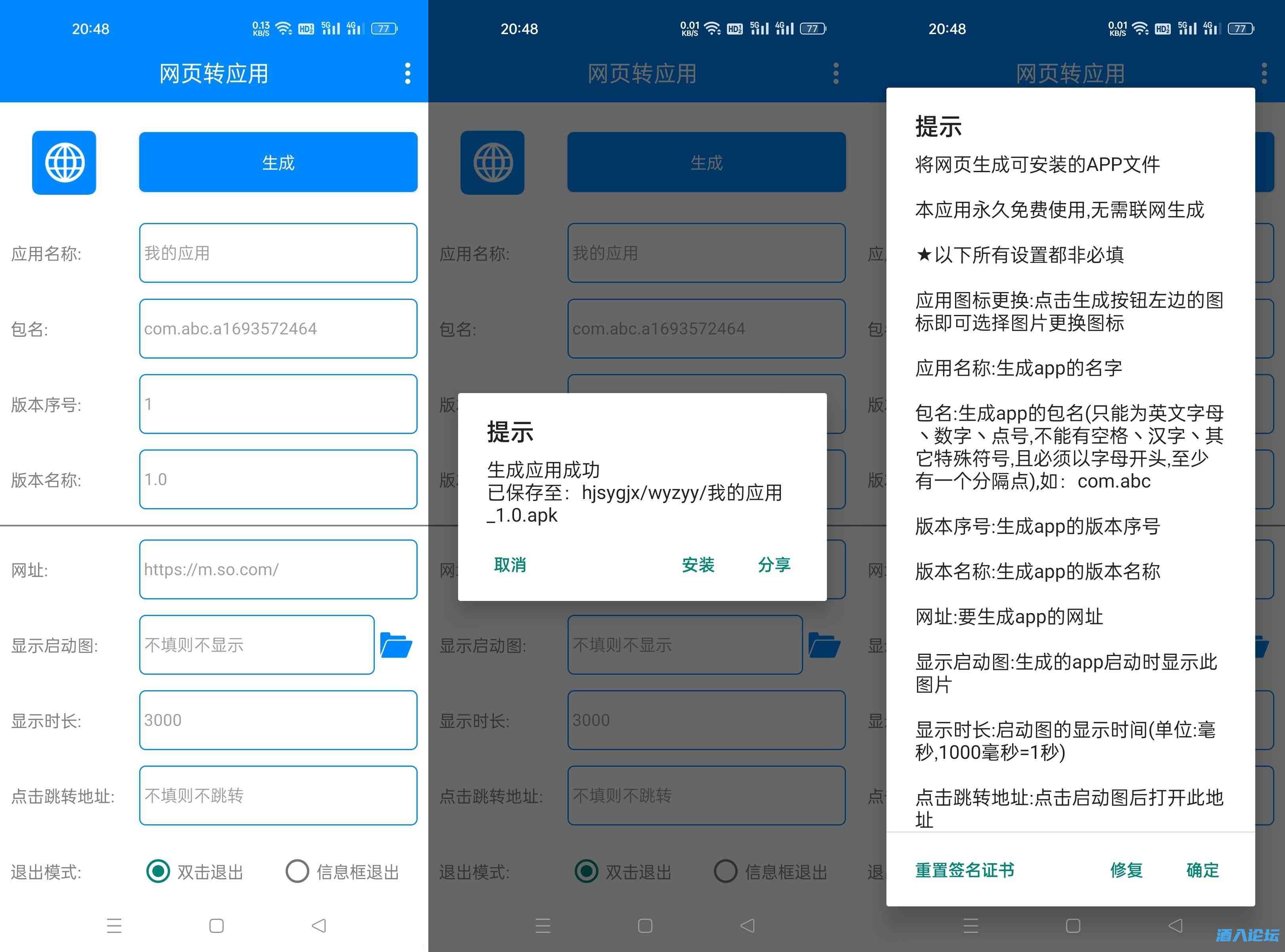 网页转应用可以将网址转换成可安装的APP应用。无论是新闻、博客、论坛、游戏,还是在线购物网站或者社交媒体平台,只要你有个希望转换的网址,这款应用都能为你实现,应用永久免费使用,并且无需联网,即可生成你想要的APP。